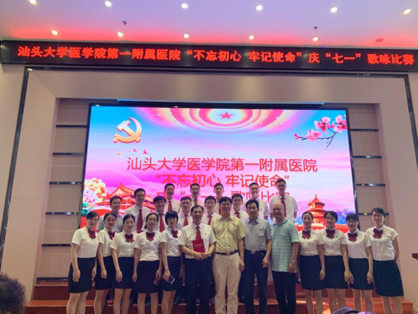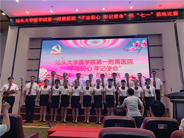 為慶祝中國共產(chǎn)黨成立98周年,謳歌黨的豐功偉績,展現(xiàn)廣大干部職工愛黨、愛院情感。6月27日下午,汕頭口腔醫(yī)療中心黨支部參加了汕頭大學(xué)醫(yī)學(xué)院第一附屬醫(yī)院“不忘初心 牢記使命”慶“七一”歌詠比賽。