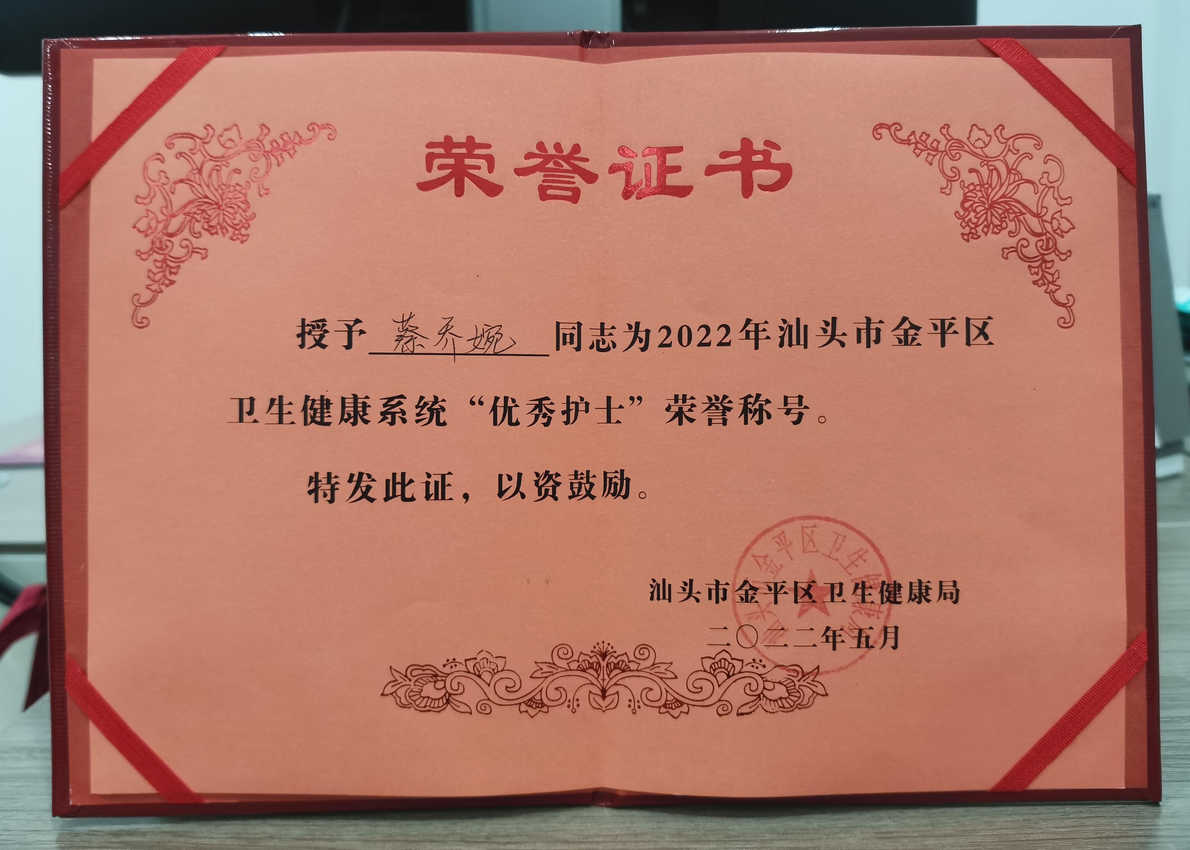 汕頭口腔醫(yī)療中心護士長獲評2022年金平區(qū)衛(wèi)生健康系統(tǒng)“優(yōu)秀護士”