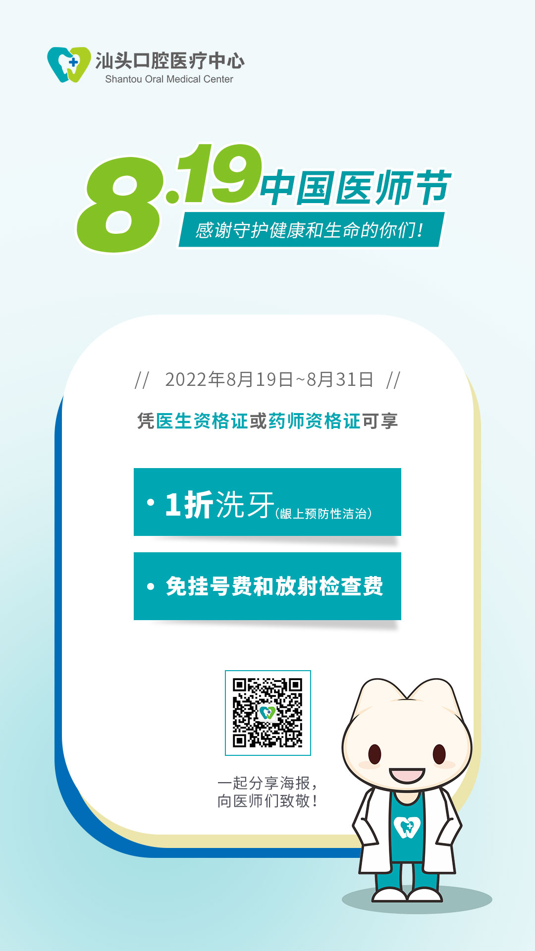 為提高衛(wèi)生健康系統(tǒng)凝聚力,強化社會尊醫(yī)重衛(wèi)的良好風(fēng)尚,汕頭口腔醫(yī)療中心特為廣大醫(yī)師送上誠摯的祝福,感謝守護健康和生命的你們!