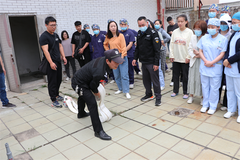 隨后,參訓(xùn)人員詳細(xì)了解醫(yī)院消防栓、滅火器、消防疏散通道的位置,在引導(dǎo)下緊張、有序地沿著消防通道撤離,完成疏散演練。