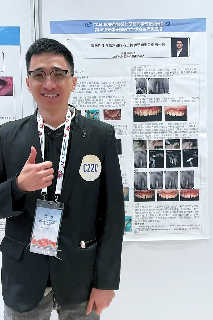 汕頭口腔醫(yī)療中心特需門診口內(nèi)專家、綜合二科主任彭揚(yáng)杰攜病例壁報(bào)《意向性牙再植術(shù)治療右上側(cè)切牙畸形舌側(cè)溝一例》亮相大會,獲廣泛關(guān)注。