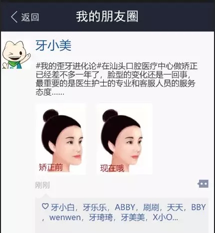 矯正者于微信朋友圈發(fā)布兩張微笑照