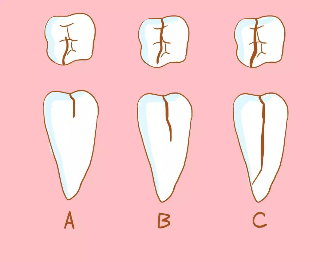 如果牙齒有裂紋,經(jīng)常會覺得牙齒酸痛。但是不同深度的裂紋,疼痛的感覺和程度也不同。一般,裂紋分為三種: