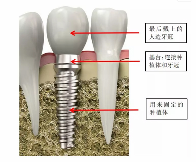 牙種植技術(shù)是用外科小手術(shù)把種植體植入牙槽骨里頭,達(dá)到跟天然牙牙根差不多的固位效果,再在上面戴上人造冠。