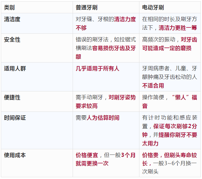 它與傳統(tǒng)的牙刷,各有優(yōu)劣(如下圖)。