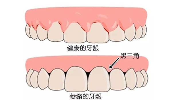 1、牙齒修復(fù):主要通過樹脂充填或戴用義齦來掩飾黑三角。