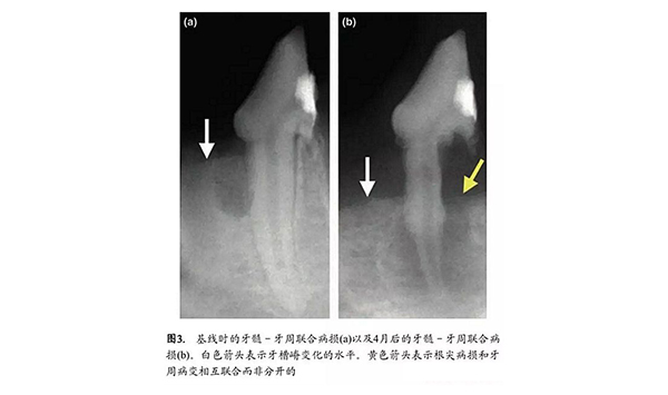 2、若吸收區(qū)已穿通根管壁,可先以氫氧化鈣制劑根管內(nèi)封藥治療,待X線檢查有鈣化組織形成后,再做根管充填。