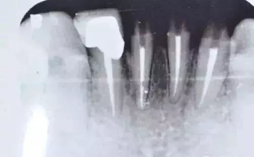 劉小姐的烤瓷牙在使用了六年之后,雖然仍能夠正常飲食,但卻一直斷斷續(xù)續(xù)出現(xiàn)牙痛的癥狀,靠吃著消炎藥來(lái)緩解疼痛。直到前不久,劉小姐發(fā)現(xiàn)左邊上排的烤瓷牙出現(xiàn)松動(dòng),于是才到醫(yī)院進(jìn)行檢查。經(jīng)過(guò)檢查發(fā)現(xiàn),她的牙冠內(nèi)存在的基牙都已經(jīng)全部發(fā)炎,并開(kāi)始腐爛,只能拔除剩余的腐爛基牙,做全口固定的種植牙。